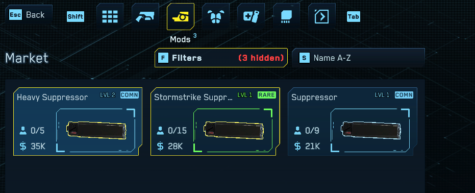 - Fixed bug with going from Roster > Equip Mods > Market where it was not always correctly filtering to the type of mod in Equip Mods screen