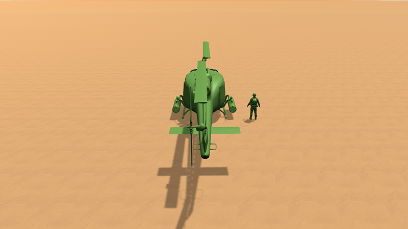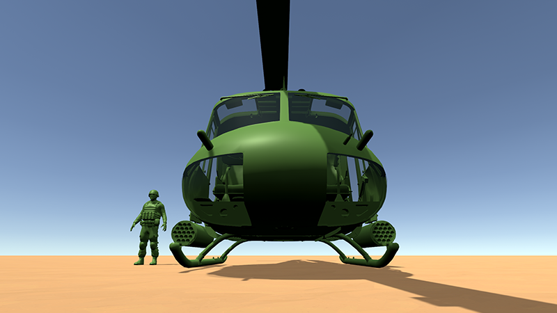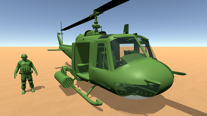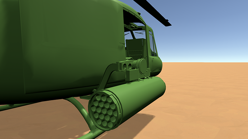 In the game, this helicopter is obviously a means of air transport, with the addition of a couple of rocket pods to break up the monotony of the player piloting it and allow them to clear the landing zone before disembarking their men.