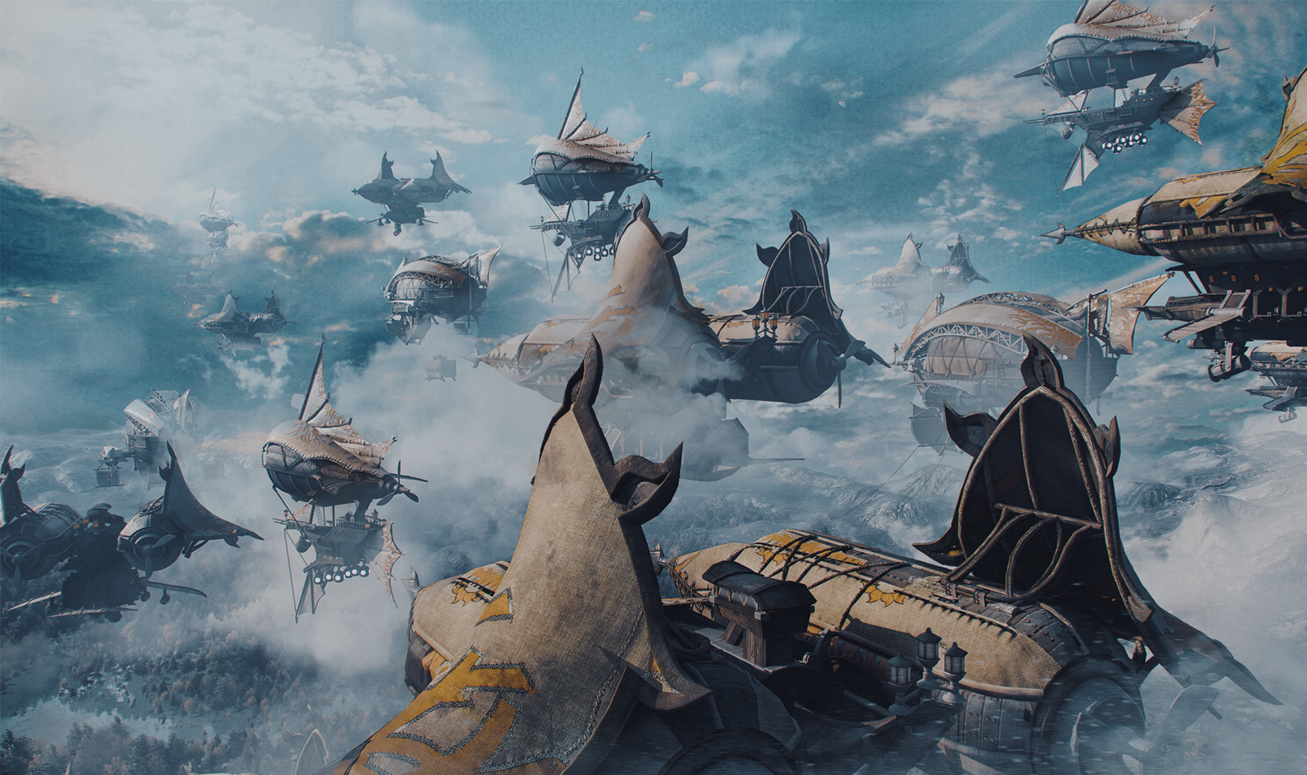 One of the most common machines is the Skywalker - airships built from wood, metal, and fragments of ancient machinery, designed to endure the harsh air above the Shroud. In peace, they trade and explore. In war, they throw solar bombs from above.