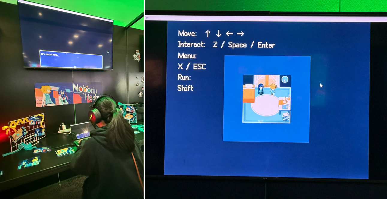 Selected for the Student Showcase, the game is playable on-site — grab some free goodies and chat with the developers!