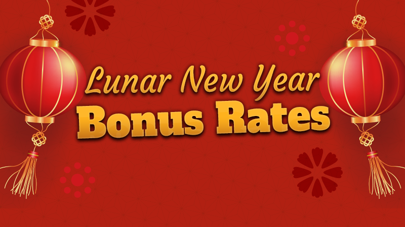 Lunar New Year is coming this weekend. In celebration of Lunar New Years weekend we have a special Triple Bonus Rates! Starting tomorrow at 11:00 AM until Monday, January 27 we’re offering increases on the following types of gains: