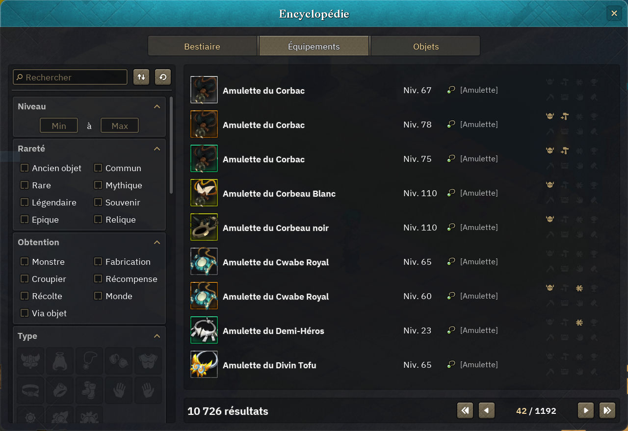 The inclusion of the Encyclopedia is another big part of Update 1.90. You can use it to look up equipment, resources and monsters. You can use various filters – level, rarity, acquisition, type, territory, etc. – to find loads of useful information about the game! This feature has been highly requested for many years within the community and has now been implemented.