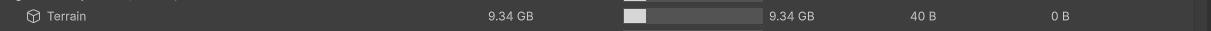 While developing new content, we needed a much bigger area to work with. This required us to use multiple 'terrains'. Each terrain is around 1x1KM. When we shipped builds to testers to play through the new content, we had a lot of crashes. These crashes are consistently caused by being out of system memory. This led to an investigation. As it turns out, each terrain was using 9GB(!) of RAM. With 3 terrains in the level, we were using 27GB of RAM for just the ground.