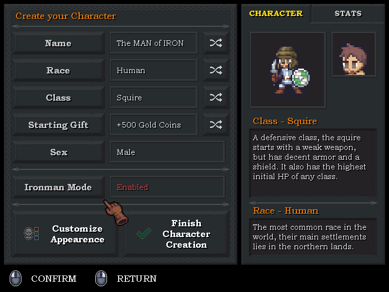 - When creating a new character you can now select the Ironman Mode as a setting;