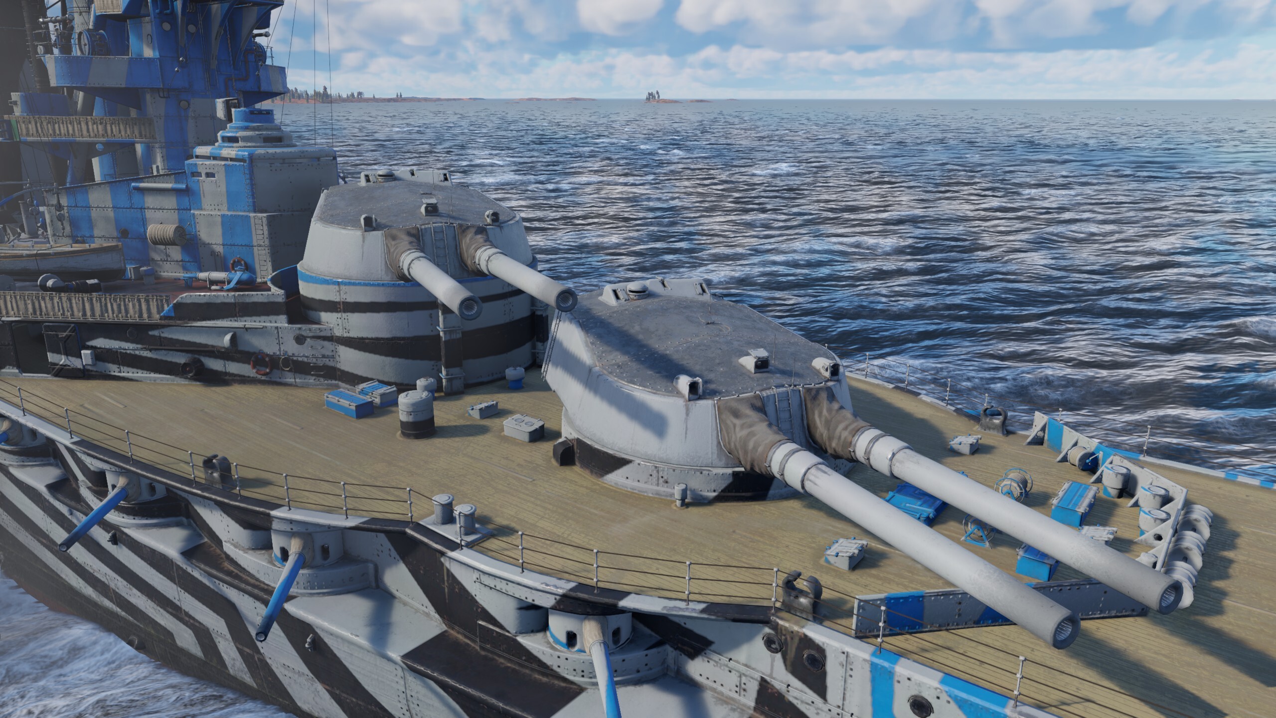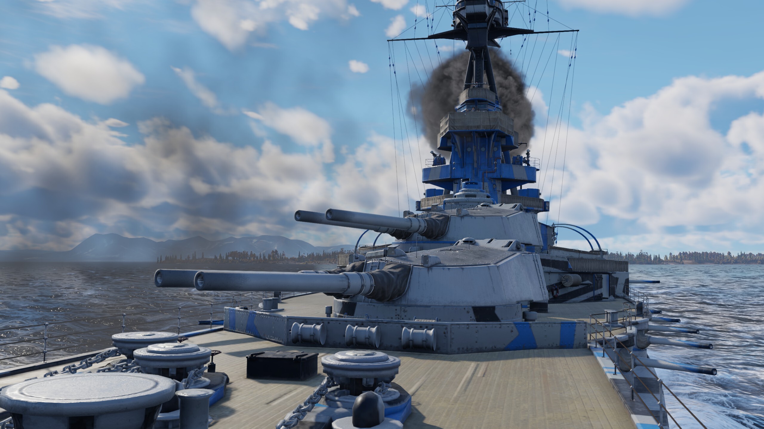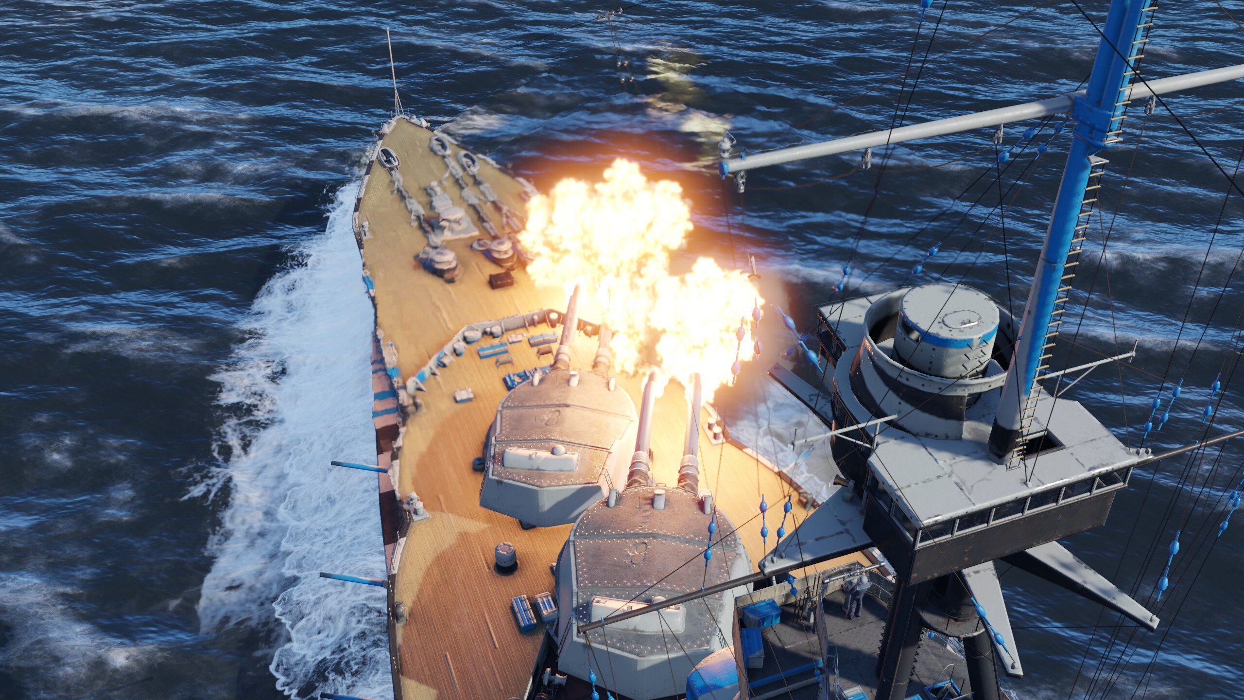 HMS Iron Duke features excellent protection and devastating firepower! Ten 343 mm main guns and twelve 152 mm secondary guns are ready to riddle anyone who challenges this super dreadnought. When playing this battleship, stick close to allies that have strong anti-air defenses, engage slower larger targets and strike with no fear!