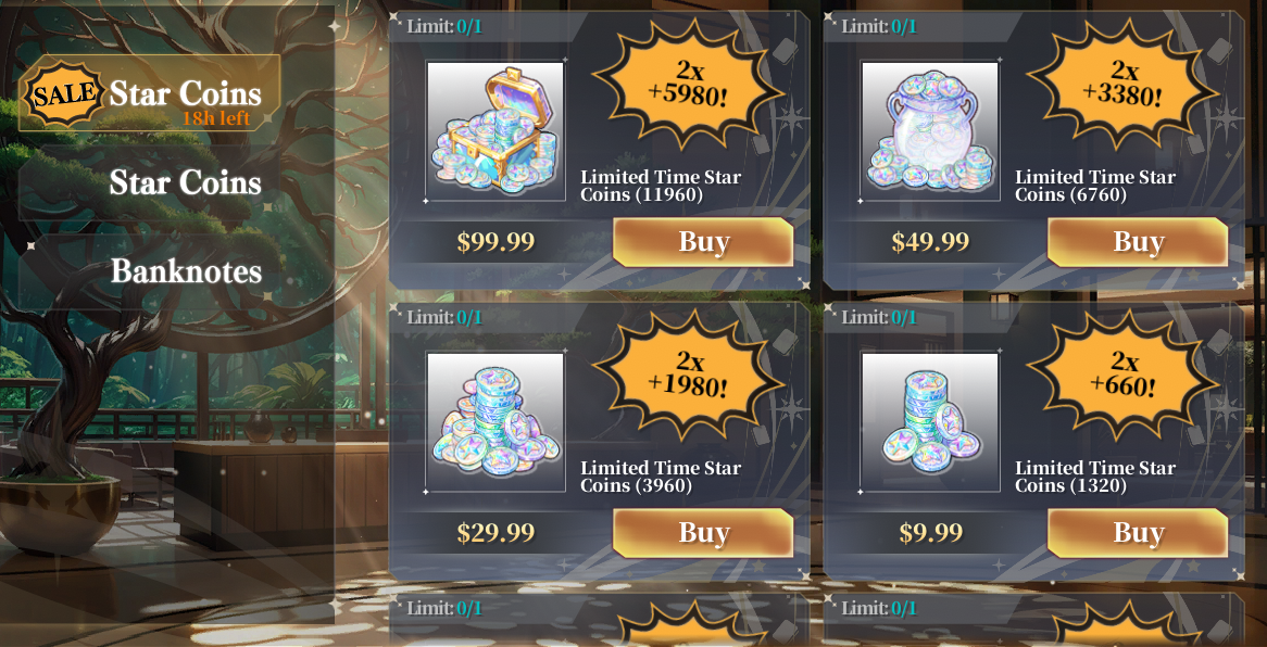 During the event, purchase any Stardom Coin pack to receive 2× the amount as a bonus!