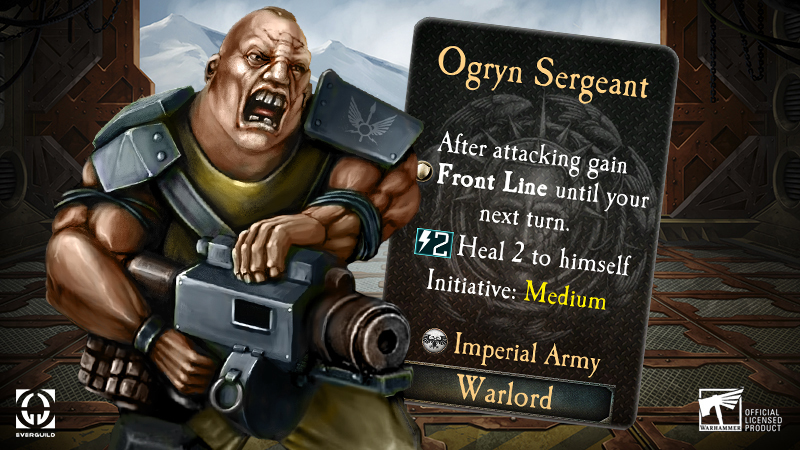 The efforts against the Behemoth in the current raid event have added a new warlord to the game, the Ogryn Sergeant! Get him first in a time-limited deck this weekend, including an exclusive card back and the Epic card Arcology!