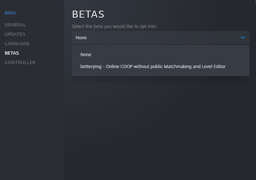 The "BetterPing" branch will have the standard Biped version without Level Editor and a Public Matchmaking System meaning that you will be able to play in online COOP with your friends like you did prior to the update (sharing the room keys).