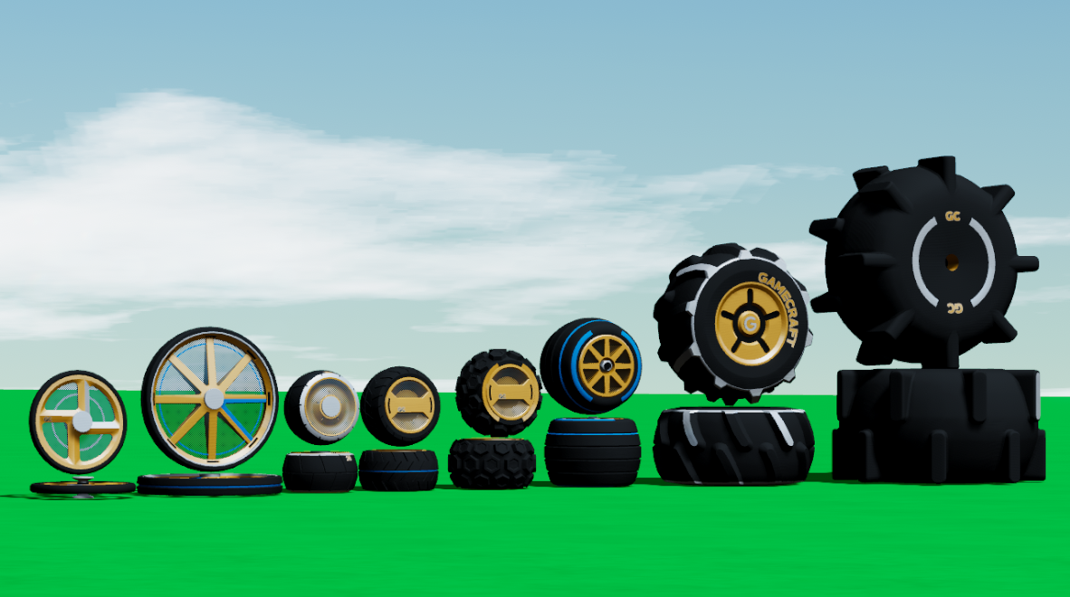 With these changes we’re also adding a range of new tyre types. We’ll have 11 new tyres for you to play around with! From bicycle tyres and horse-carriage style tyres to massive monster truck tyres, we’re sure you’ll find the perfect one for each vehicle.