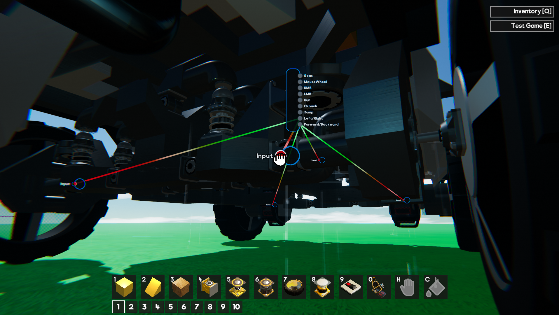 The brand new wiring system is ready to go! This method of connecting parts is an overhaul of what was in the game before and is designed to future proof all the functional blocks we hope to add in future (such as Logic Blocks and all the blocks you will need to make incredible multiplayer games). Along with future proofing the new system is designed to be more user friendly and more powerful, allowing you to achieve builds not possible before.