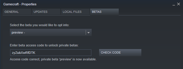 Make sure the game appears as “Gamecraft [preview]” in the Library