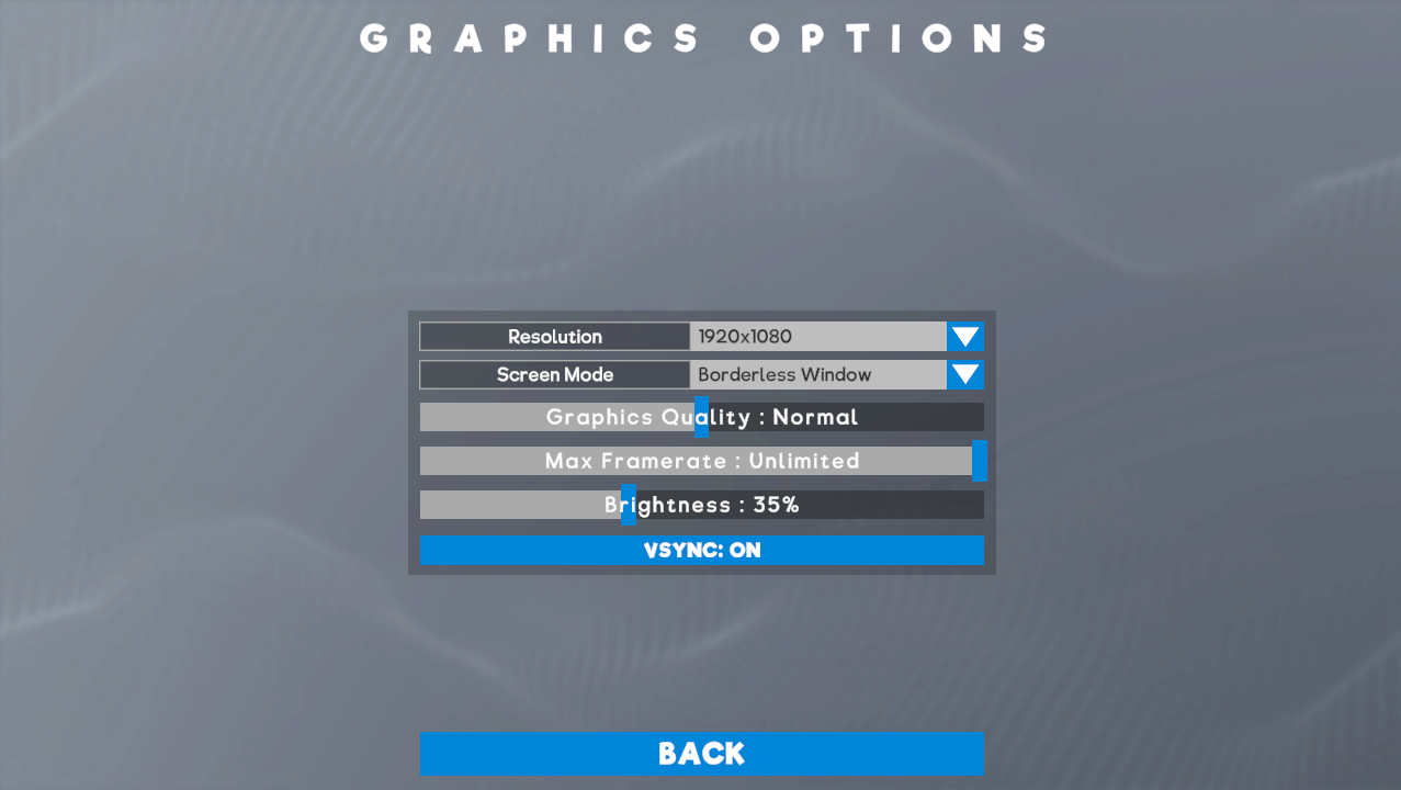 As we teased in our previous Dev Blogs, the Graphics and Audio settings screens are here too! These settings are available via the Main Menu, and in-game so that you can tweak as you play.