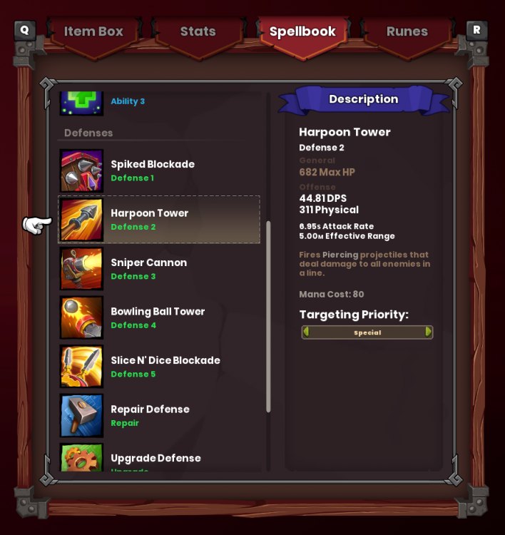 One big feature request we’ve gotten over the years is being able to select what kind of targeting priorities your towers have. That said we’ve added the ability for users to switch what kind of targeting towers have. This is done in the spellbook by selecting the defense that you wish to change. Currently we only offer the user the ability to switch between Fodder, Special, Air and Strong. Fodder and Special should work how they currently do in the game. Air works how the Plasma Defense System works and targets Air enemies first then follows a special priority. Strong works by targeting enemies that have larger health pools first, Such as Ogres, Sirens, Lycans, Djinn, etc.