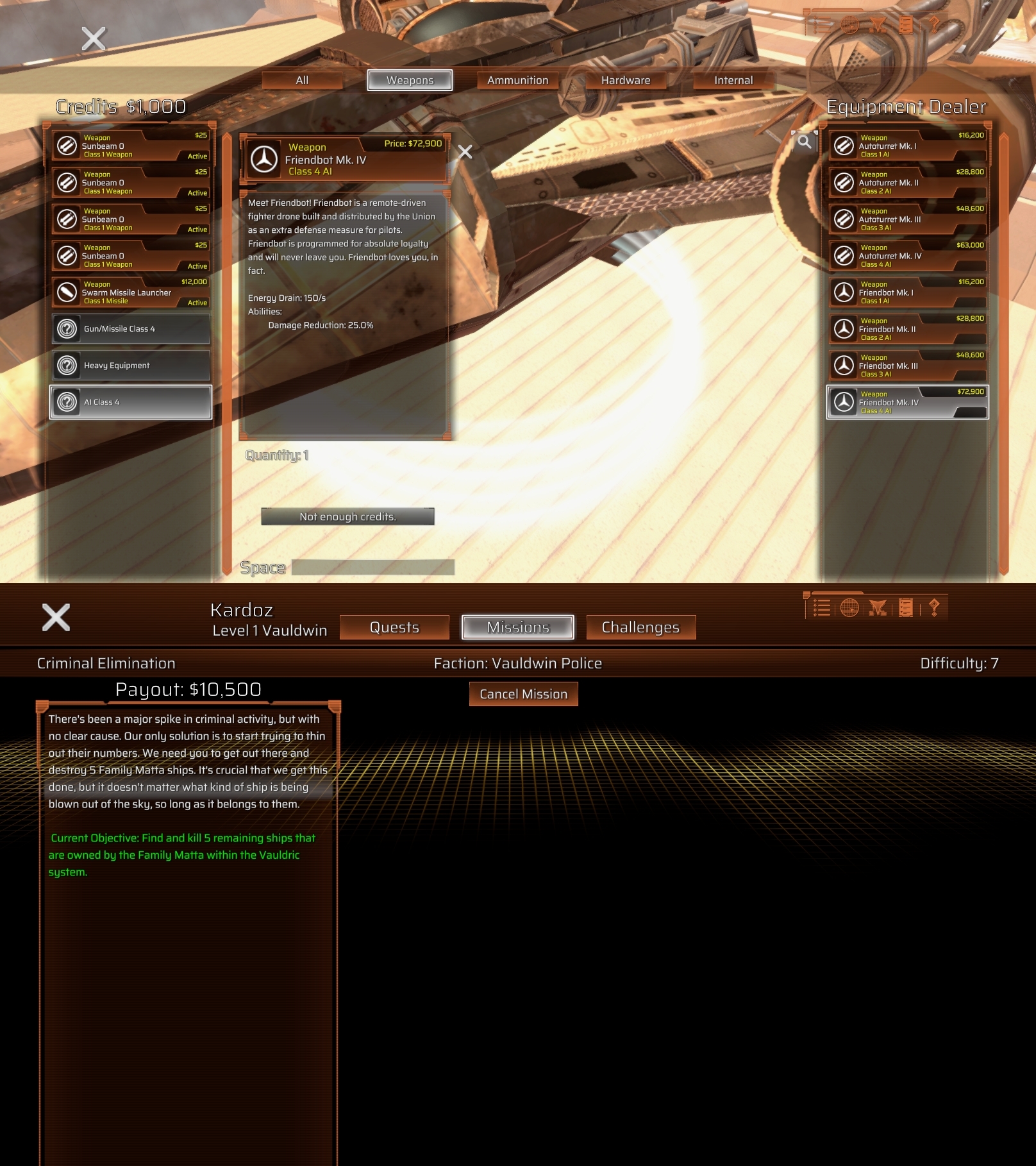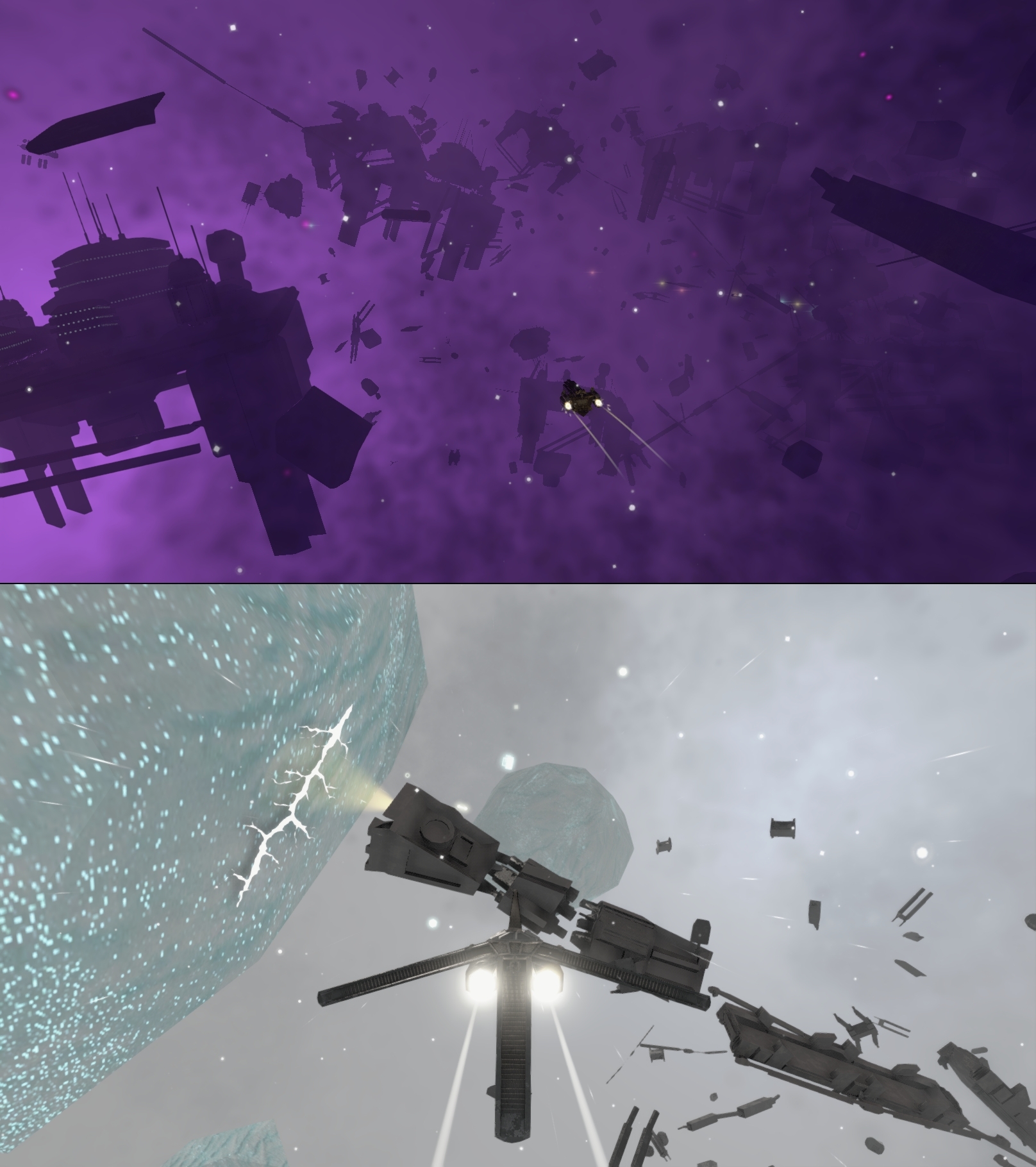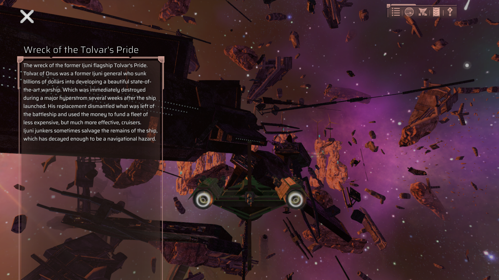 Star systems are more than just quests, stations, and vignettes. They have lots of little details in them to really bring the entire sector to life. This month was spent doing just that: detailing systems all the more. To start, we’ve added shipwrecks to every star system. Not those huge derelict capitalships mind you, but the smaller freighters and fighters.