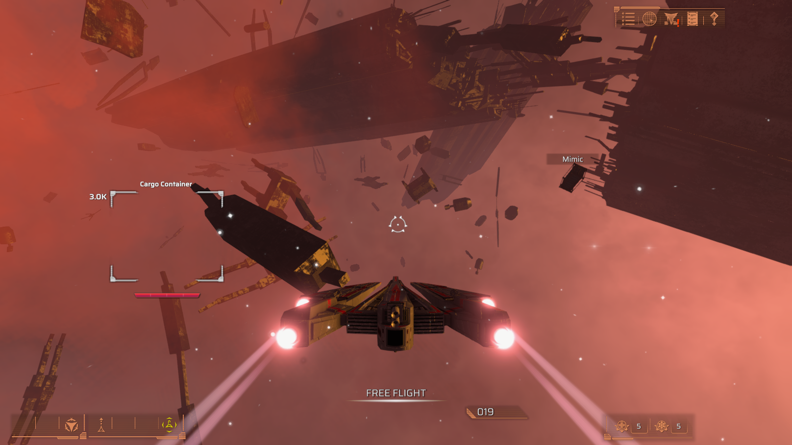 Thankfully, all the models are made and implemented in game where they should be. You’ll find huge abandoned derelicts out in space, their cargo spewed everywhere. But be wary, hazards abound, to say nothing of the cargo containers that are mimics. ]