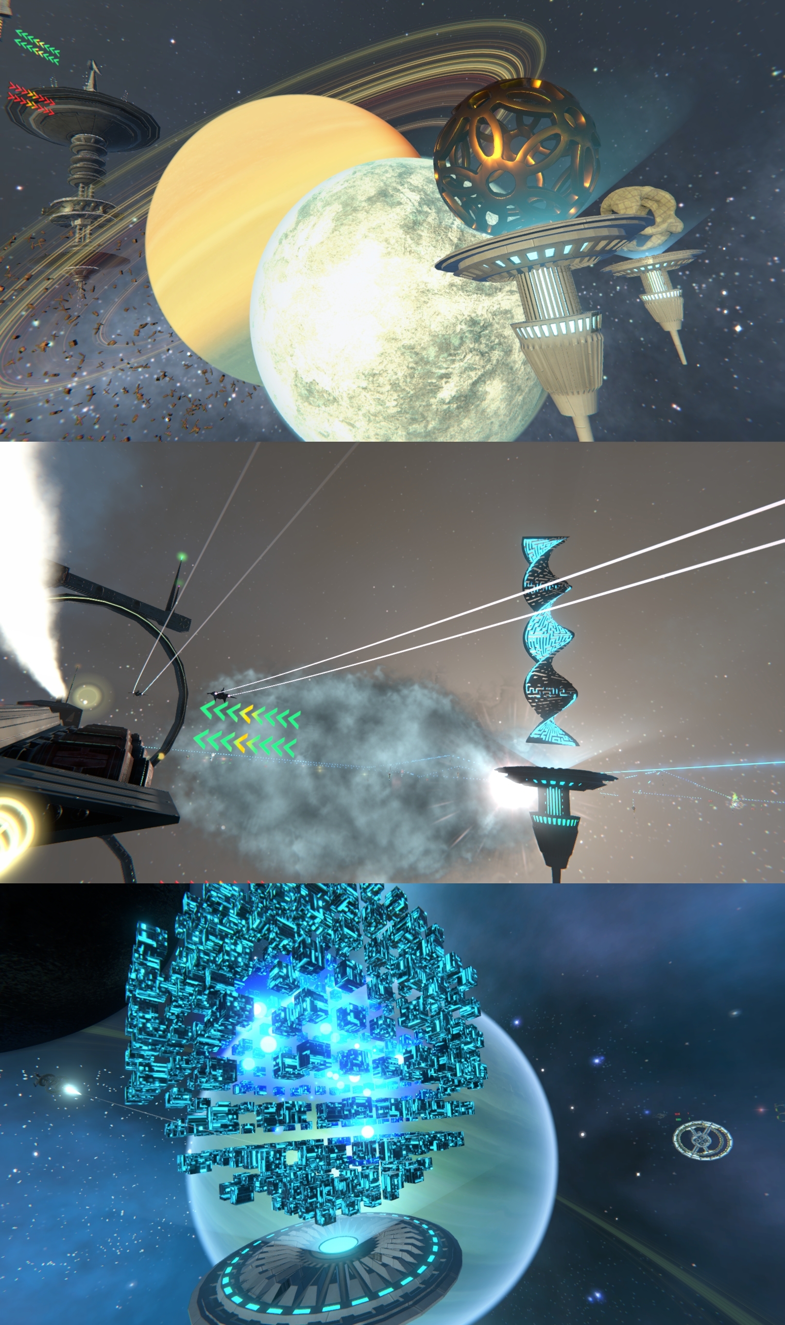 We also reworked startrawlers, those mobile garbage collectors you might have seen around the demo systems. They’re now much more efficient, there’s a lot more of them, and they have new effects and textures. With them now in a finalized state, I’ve placed them around the galaxy.