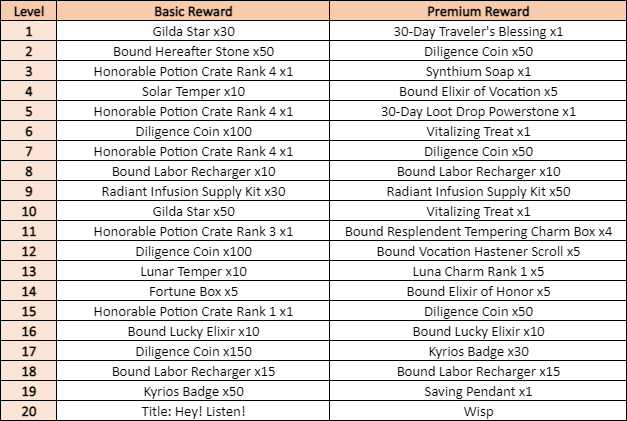 Please note: An ArchePass Upgrade Ticket from the Marketplace for 1,500 Credits is required to receive the rewards from the Premium track.