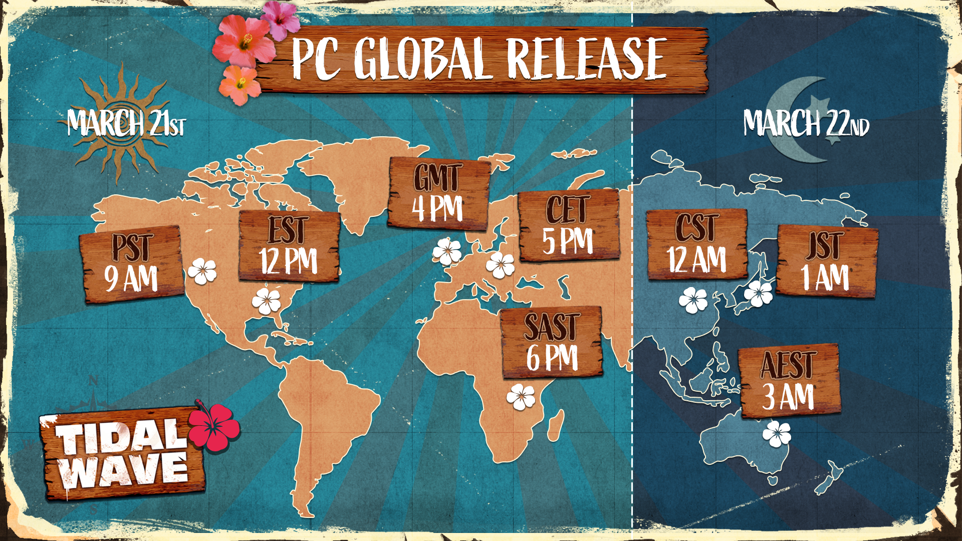 Most of you know the date, but what about the exact hour of the release? No worries, we've got you covered, folks! Check this handy graphic below to see when exactly Tidal Wave DLC releases in your region. And yes – I'm so sorry for those of you who have to wait up until 2 am on March 22nd 🥹