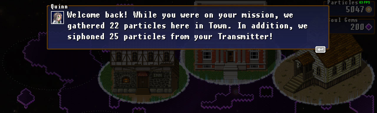 When you complete Act 1, you will now receive a new bundle item, the Transmitter, which automatically transfers some collected particles back to down as you adventure. This item is designed to help make farming easier, or protect some of the particles you collect in difficult runs.