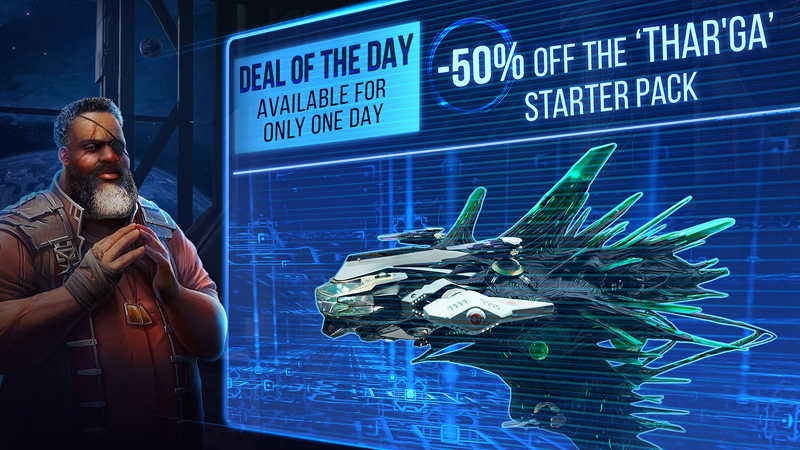 Only today, January 27, we offer a 50% discount on the Thar'Ga starter pack! The pack can be purchased both in the in-game store, and directly in the Ellydium ship tree.