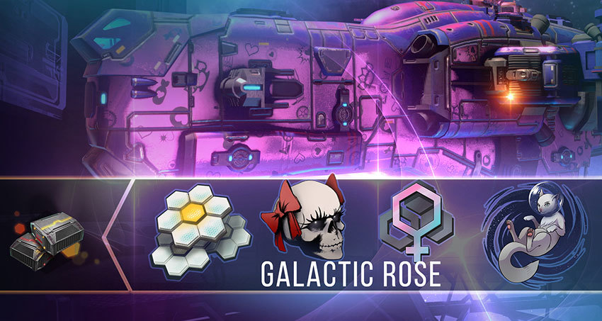 You can get all the stickers and the festive pattern in a special container bundle. To do this, you will need to go to the “Bundles” tab and select “Galactic Rose”.