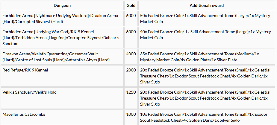 A large number of changes have been made to existing instances, with entry costs being changed, rewards redistributed, and difficulty levels adjusted. Note: Below is a rundown of the entry details and changes to quests. It does not include any changes to the loot in dungeons.