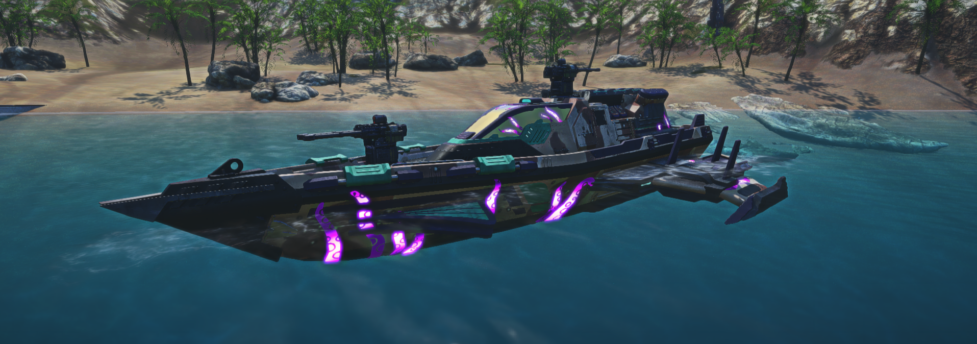 Navigate the island chain of Oshur with our very first naval vessel, the Corsair assault craft. This vehicle is available on the islands of Oshur, and can be pulled from any Flotilla or Seapost. One driver, two gunners, and up to five additional passengers can assault the sea or shore with this powerful addition to your empire's arsenal.