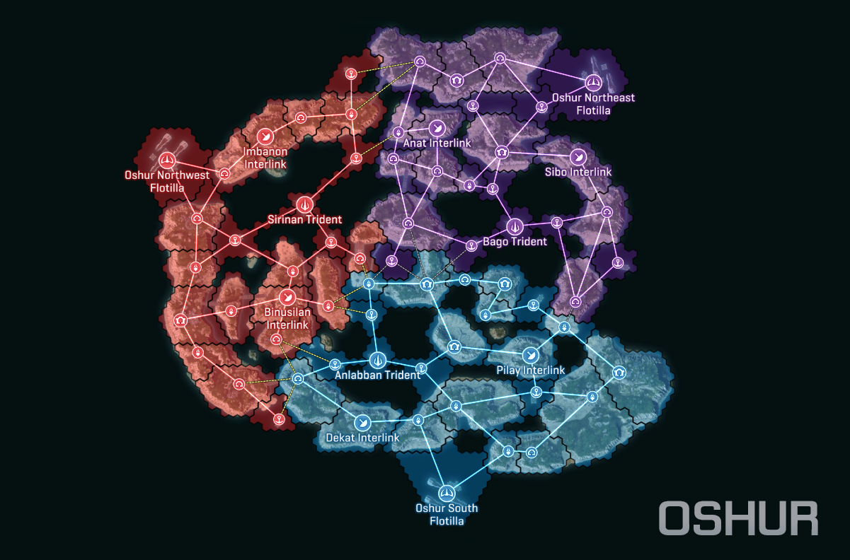 Each Flotilla has been relocated, and their starting lattice/region control has been adjusted to allow for more fight locations throughout Oshur.