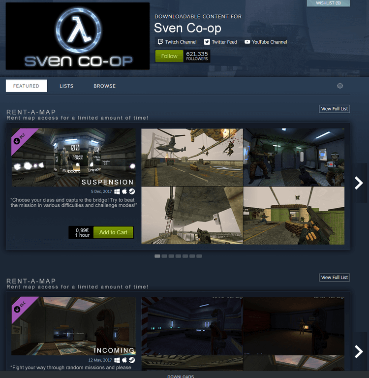 Of course you want to play Sven Co-op 24/7 but you also have to eat at some point, visit relatives or walk your dog. Plus, you can only play one map at a time, so for 99% of the time, all the maps in your library are unused! So, why pay a lot of money for a map you're only playing every now and then? Why own a thing you hardly use, when you can also RENT it for the time you are using it?