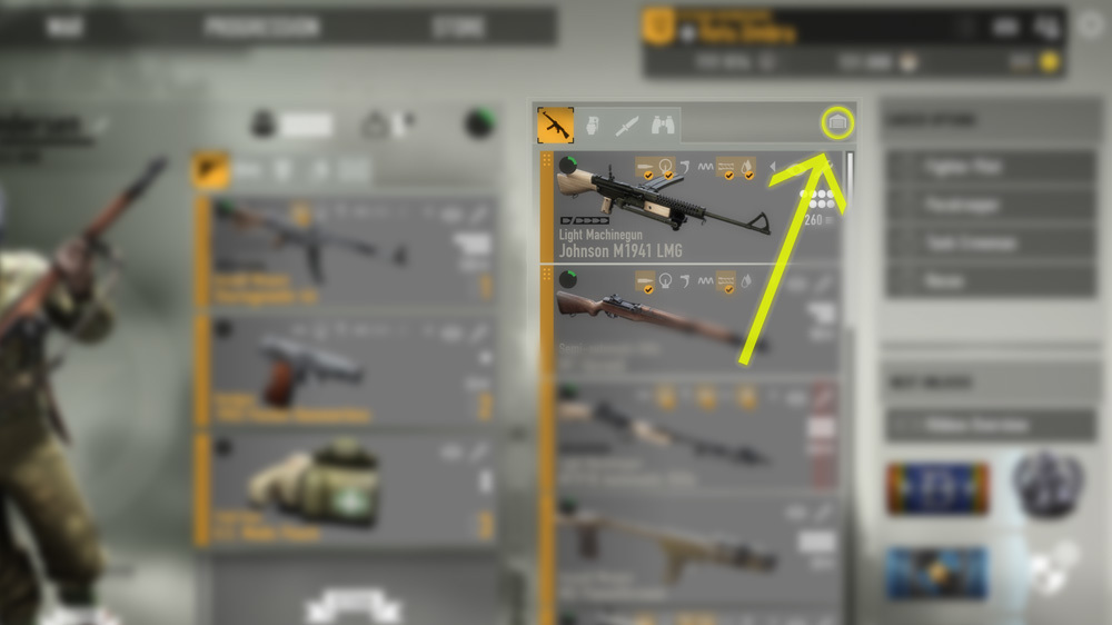 You can find the depot when selecting gear for any of your soldiers on the right side of the category icons. Example below: