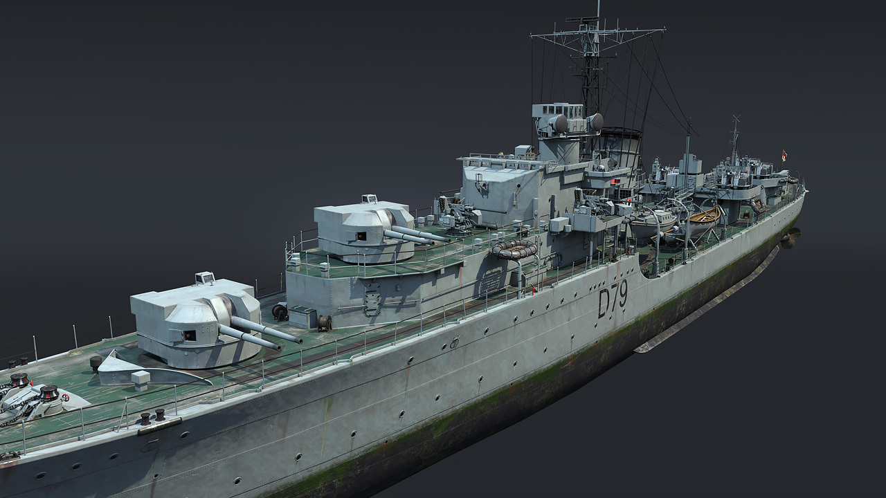 The premium destroyer HMS Cadiz will become the third Battle-class ship in the game, she will be available in the new season of the Battle Pass, which will start in War Thunder very soon. The British Battle-class destroyers are known as one of the best in the game due to the forward placed main guns, a solid air defence battery and 10 torpedoes in two five-tube launchers. Cadiz is a typical representative of her class! Both turrets of the main calibre guns are located in the forward part of the deck, which gives the ship an advantage in face-off attacks and breakthroughs to the front. The 114mm cannons offer a good balance between rate of fire and damage, the commander can choose from semi-armour-piercing and several types of high-explosive fragmentation shells. The most effective are probably the radio fuse rounds, which produce a larger number of fragments upon detonation and can be successfully used against aircraft.