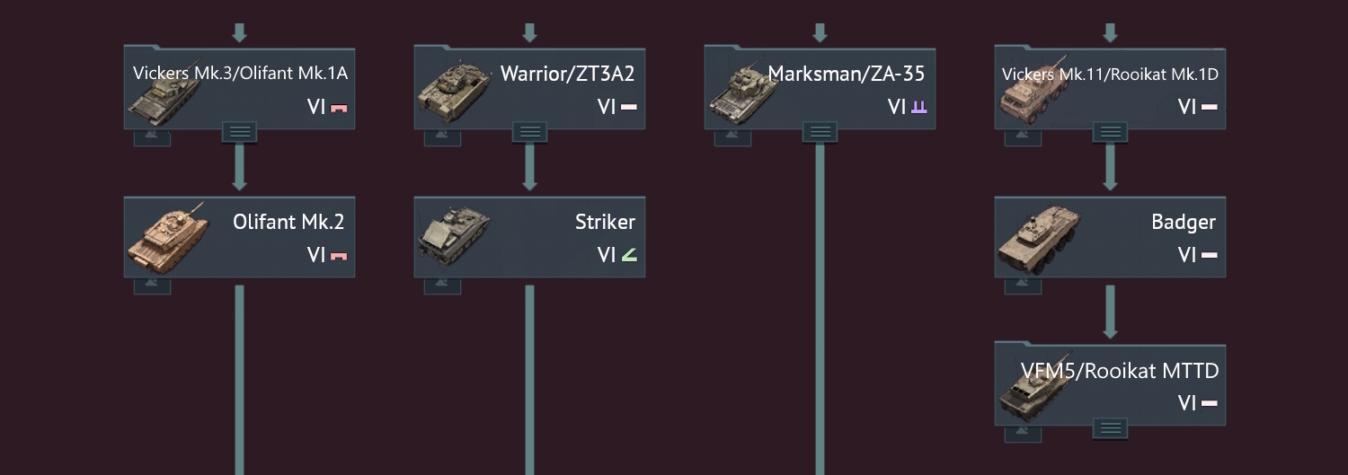 After the release of the next major update, some vehicles in the British ground forces tree will be rearranged. These vehicles are marked with a special icon. We’re doing these changes with the aim at improving the structure of the tree, and for the convenience and order when adding various ground vehicles from Great Britain and Commonwealth countries in the future.