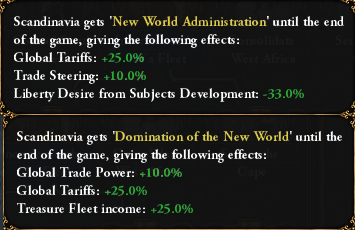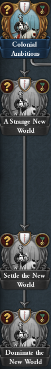 A colonial branch which revolves around the New and the Old World colonialism. The highlight of these missions is a permanent Trade Company Investment cost reduction of 20% and Build Cost reduction of 10%.