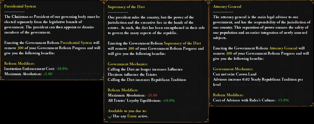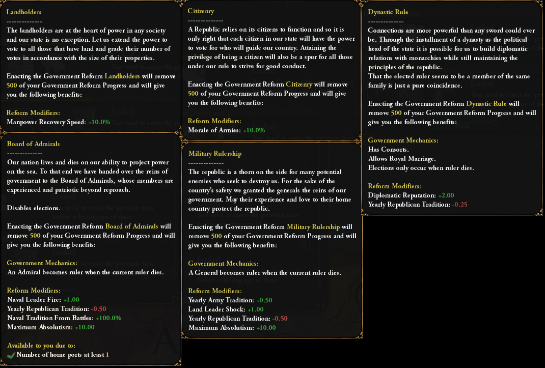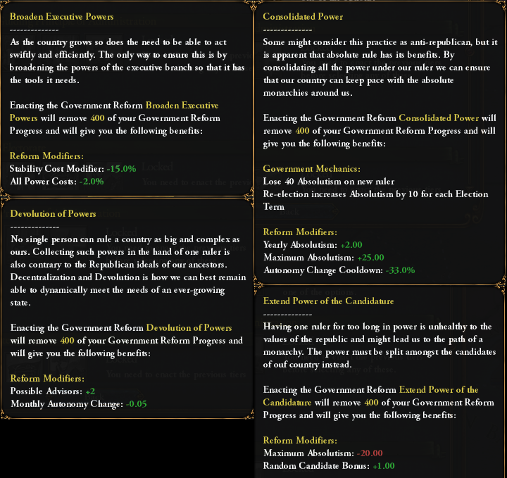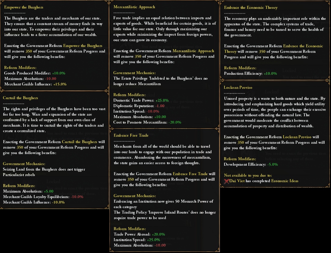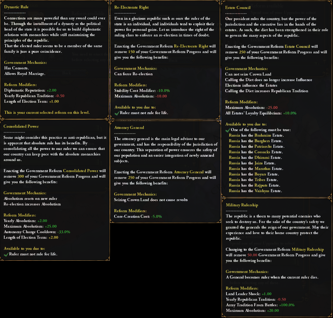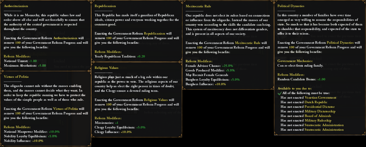 Note: Merchant republic related reforms will not be touched and are not shown here.