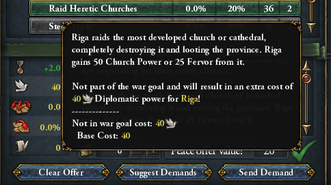 Eventually, with the mission “Crusaders of the Steppes” your Order will reflect the changes they did undergo through: On a final note: razing works a little bit differently for a “Theocratic Horde” such as your Teutonic Holy Horde. You can only raze heathen and heretic provinces, and you gain 1 Devotion for each 3 development razed. Additionally, because you get this reform rather late, the decrease of the Monarch Power starts at base tech 12 instead of 3.