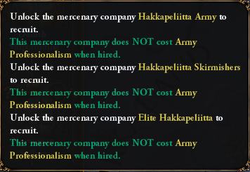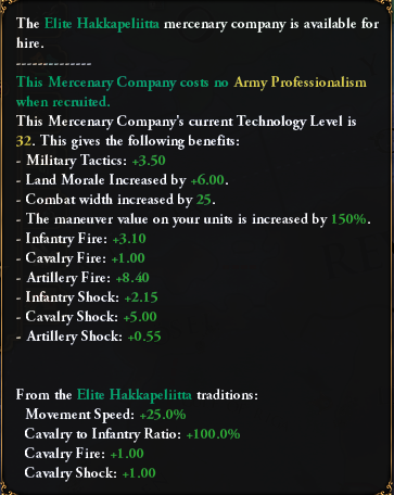 You might notice that their names are in green. The reason for that is to showcase that these mercenaries cost no Army Professionalism to hire. They also possess a special tooltip when you hover over them to showcase their special feat: