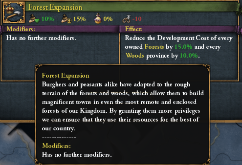 The final part of the mission tree is revolving around developing your land. Highlight of it is a permanent -5% Tech Cost Reduction in your capital province after constructing 10 universities.