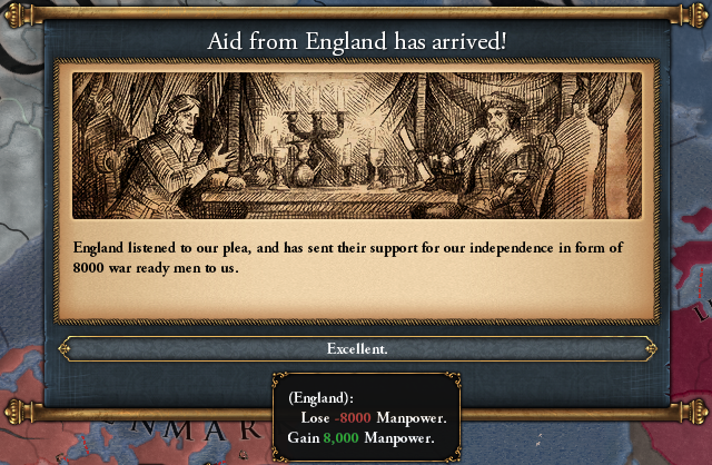 Note: Although you are asking Denmark’s rivals/enemies for support in the first three options, you still get a flat reward so the war against Denmark/Sweden will be easier to handle even if the rivals refuse to support you.
