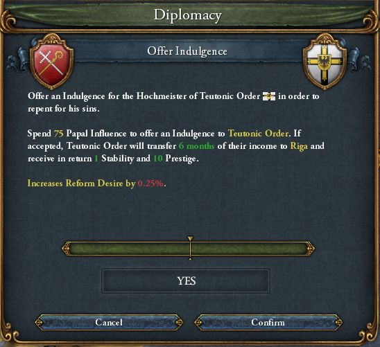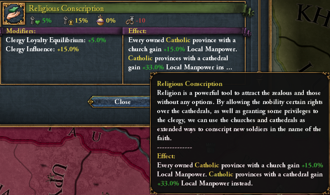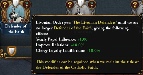 Meanwhile, the mission “Defender of the Faith” requires you to be the Defender of the Catholic Faith for 25 consecutive years without any break. As a reward you get the following modifier: