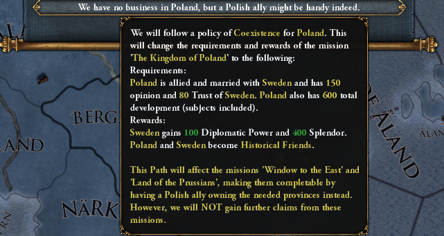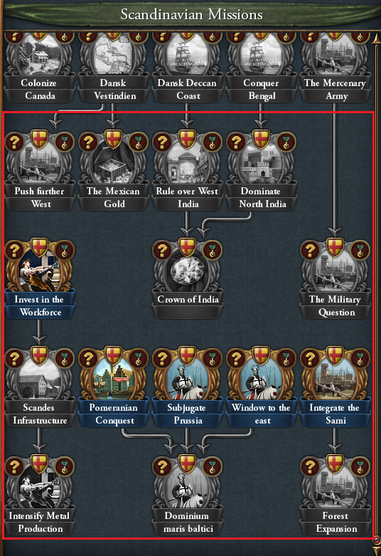 As Sweden already has a very extensive mission tree the formation of Scandinavia expands the mission tree by 13 new missions: