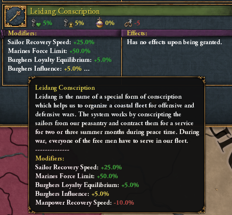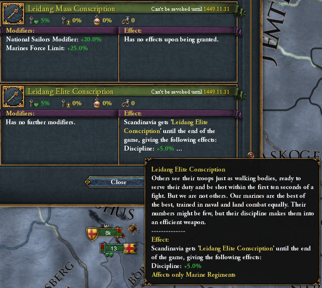 The more exciting missions are, however, in the middle. With “Expand the Leidang” you unlock two new estate privileges for the Nobility which mirror the customizability of the Swedish Caroleans - but not it affects your marines.
