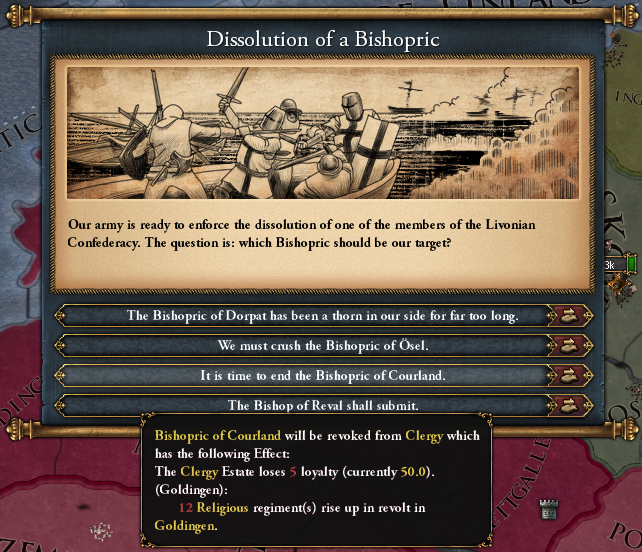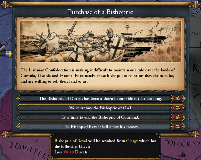 On a side note: you need to own the provinces where these bishoprics are located to revoke the privileges through the decisions or manually. However, losing the land will NOT remove the privilege - this is mostly due to gameplay reasons as you shouldn’t be motivated to give all your land to Lithuania to get rid of these privileges.