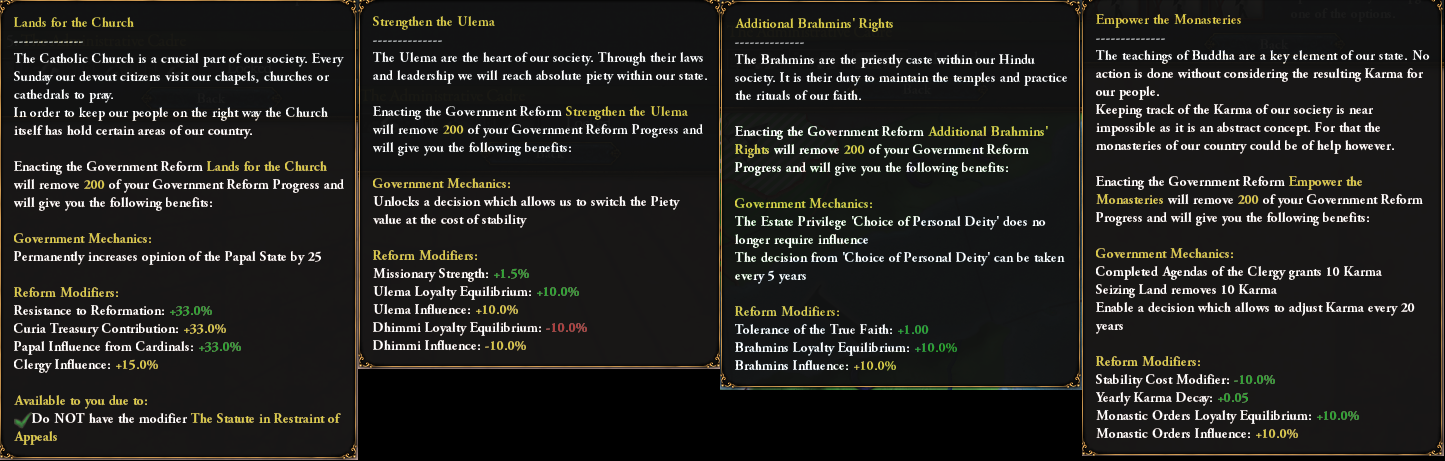 Note: All the different reforms for the religions will be revealed in a later Development Diary.
