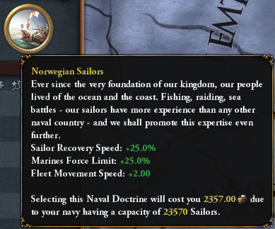“Expand the Royal Navy” will further improve your naval and marine gameplay as it gives permanently -10% Shock Damage Received for your Marines, completely nullifying their drawback, and unlocking an upgraded version of your Naval Doctrine too.