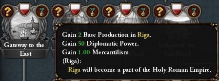 Gaining ports in Danzig, cooperating with the Traders and developing the city of Danzig will grant the following benefits: