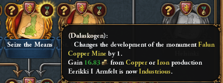 Seize the Means will task you with seizing the means of production behind Europe’s prime source of copper and will grant you a good bit of ducats from your copper and iron production, the ‘Industrious’ trait (if your ruler has enough available slots) as well as the following reward: