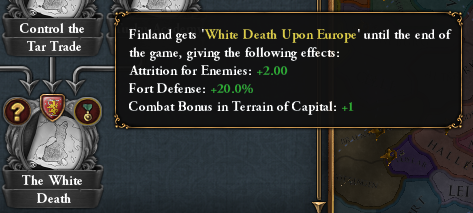 The culmination of the Finnish tree ends with unleashing the White Death upon Europe and a powerful permanent country modifier to go with it: