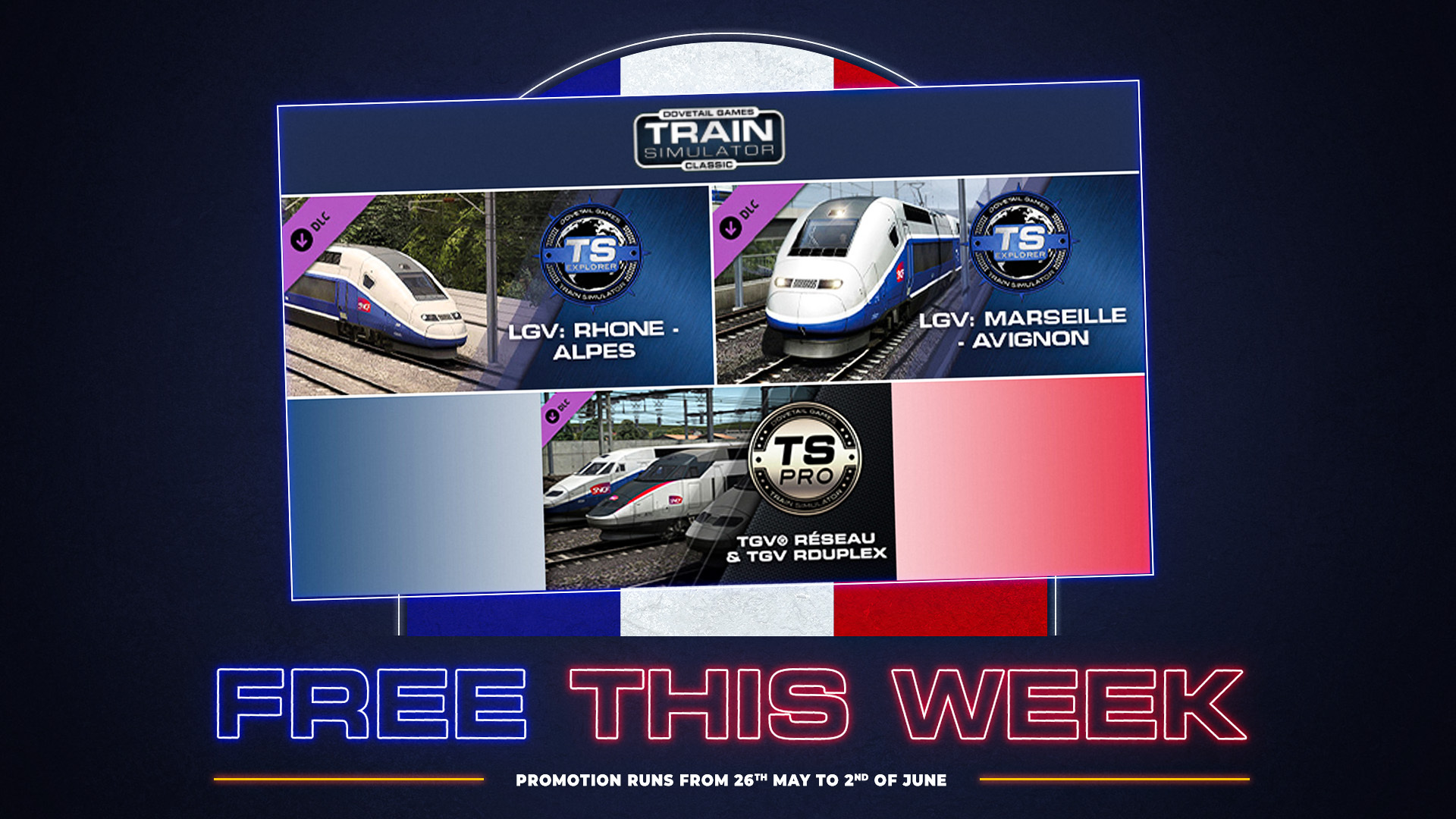Get these three add-ons for Train Simulator Classic (and LGV Mediterranee on Train Sim World), free before 2nd June. Head to the store links above to add each to your Library. Players taking advantage of this celebration will have these permanently added to their collection on the Steam Store!
