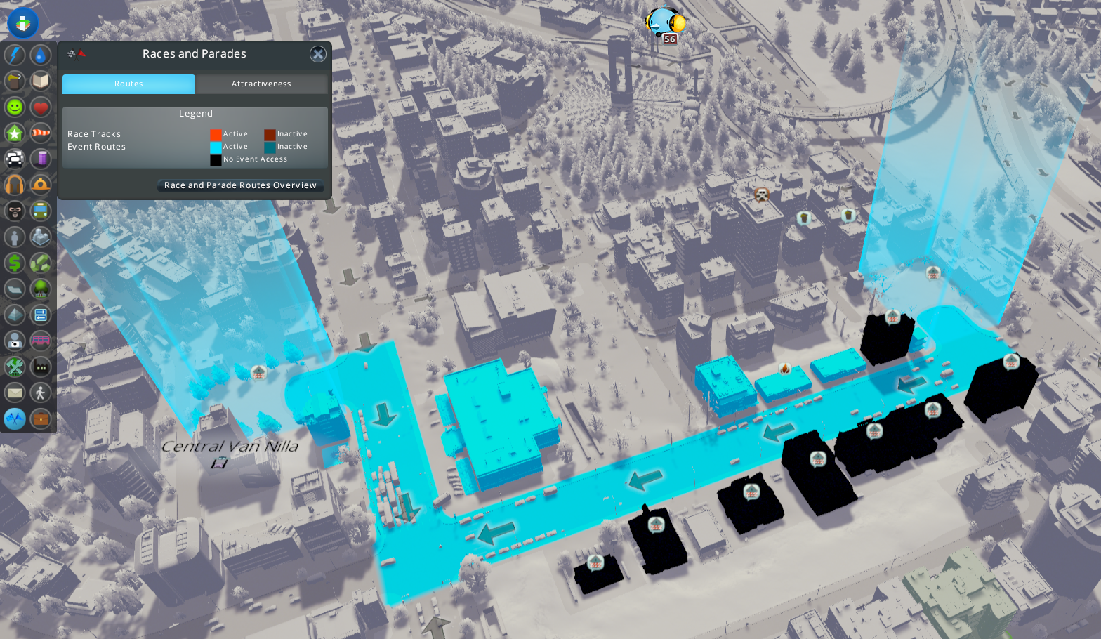 It’s a good idea to check the new Races and Parades Info View to see if any buildings have “no event access”, meaning that services cannot reach them when an event is in any of the active phases.