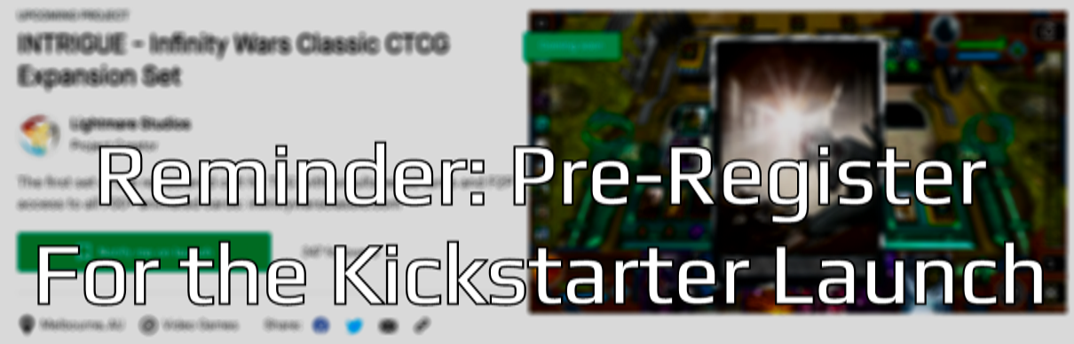 We're nearing our Free to play launch, and joining it is our brand new set release, Intrigue. If you're interested in jumping into the game's Beta the second it's ready, or if you're more concerned with getting some sweet early bird perks, exclusive cards and platinum pre-order cards, sign up today HERE, or head to http://ks.infinitywarsclassic.com to be added to our pre-launch page.